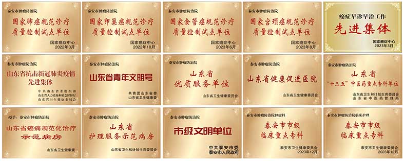 建院六十余年来,全院干部职工秉承诚信创新,厚德敬业精神,围绕专科建设、精细化管理、优质服务三条主线凝心聚力,大力谋发展、促改革、优服务、严管理,在社会上树立了良好的医院形象。医院先后荣获全国癌症早诊早治项目先进集体、山东省优质服务医疗单位、山东省健康促进医院、山东省名老中医药专家传承工作室、泰安市精神文明单位、泰安市民满意医院等荣誉称号。