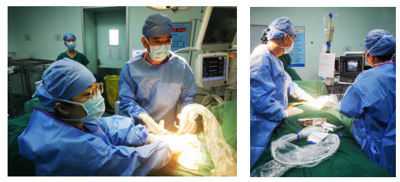 (1)荧光腔镜技术施行乳腺癌根治手术,中早期患者不需切除全部乳房,可保留乳头乳晕,甚至可以通过腔镜微创技术即刻重建乳房,且乳房表面皮肤无切口瘢痕,还原自己的乳房原貌,让患者恢复自信,继续保持良好的生活状态。目前腔镜技术施行乳腺癌根治手术已积累了近1500例的丰富经验,可开展的术式包括腋窝原生态腔镜乳腺癌前哨淋巴结活检术、腔镜乳腺癌保留乳头乳晕皮下腺体全切除术、腔镜乳腺癌根治即刻大网膜乳房重建术、腔镜乳腺癌根治即刻假体乳房重建、腔镜乳腺癌根治背阔肌乳房重建、腔镜切除巨大男性乳房发育腺体、腔镜清除乳房隆胸物质及中度乳房下垂腔镜微创提升等微创手术。
