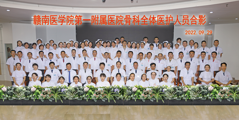 科室简介赣南医学院第一附属医院骨科是赣州市医学领先学科、赣南医学院重点学科,目前共设5个病区,核定床位266张,分为脊柱、关节与运医、创伤骨科三大主要亚专业方向,专业技术力量雄厚,拥有高级职称专业人员19名,现有博士9名。近5年主持国家自然科学基金项目3项、省部级以上科研项目数十项,获省级科技进步奖2项,发表SCI学术论文近40篇。常规开展髋膝肩肘关节置换、关节镜、脊柱内镜、经口咽前路寰枢椎、寰枢椎椎弓根螺钉内固定、颈椎、胸椎、腰椎前后路后路手术,脊柱侧弯畸形矫形手术、复杂骨盆及四肢骨折复位内固定等手术,其水平已处于省内先进,在赣南及周边省市享有较高声誉。2022年度髋关节置换、椎间盘手术DRGs绩效分析全省第二、全市排名第一。是江西省医学会骨科学分会副主任委员挂靠单位。 -