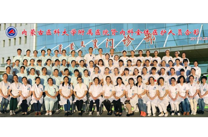 内蒙古医学院附属医院肾内科专业成立于1972年,成为内蒙古自治区肾脏病最早独立的科室。主要开展各种原因所致的急、慢性肾小球肾炎、急进性肾小球肾炎及急慢性间质性肾炎的诊断和治疗。原发性小血管炎,溶血性尿毒症综合征、多囊肾、肺-肾出血综合征、系统性红斑狼疮等各种继发性肾脏病的诊治。各种先天性肾小球、肾小管疾病及遗传性肾脏病的诊治。目前开展血液透析、腹膜透析、肾活检、中心静脉双腔留置导管及动静脉内瘘成型术在长期血液透析中的应用、连续性肾脏替代治疗(CRRT)、开展腹水回输、单基膜血浆置换疗法及双重血浆置换、免疫吸附、胆色素吸附、白细胞去除术和血液灌流,枸橼酸抗凝、枸橼酸钠抗凝治疗、人工肝治疗、动静脉内瘘狭窄PTA球囊扩张术、中心静脉狭窄球囊扩张术等血液净化相关技术。在原发性及继发性肾病领域,独立完成肾活检的临床与病理检查。