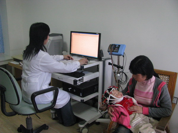 科室简介我院脑电图室拥有多台先进的仪器设备:日本光电产视频、动态多功能脑电图仪,及肌电诱发电位仪,丹迪4通道全功能肌电诱发电位仪,美国尼高利脑功能监测仪,加拿大XLTEK常规脑电图及视频脑电图仪等。工作人员:5名专业医师(技师)及2名护士,曾派人到北京、上海、武汉、杭州、重庆等专科医院进修学习,有较专业的儿科电生理基础及诊断经验,是我市唯一的儿科脑电生理室。